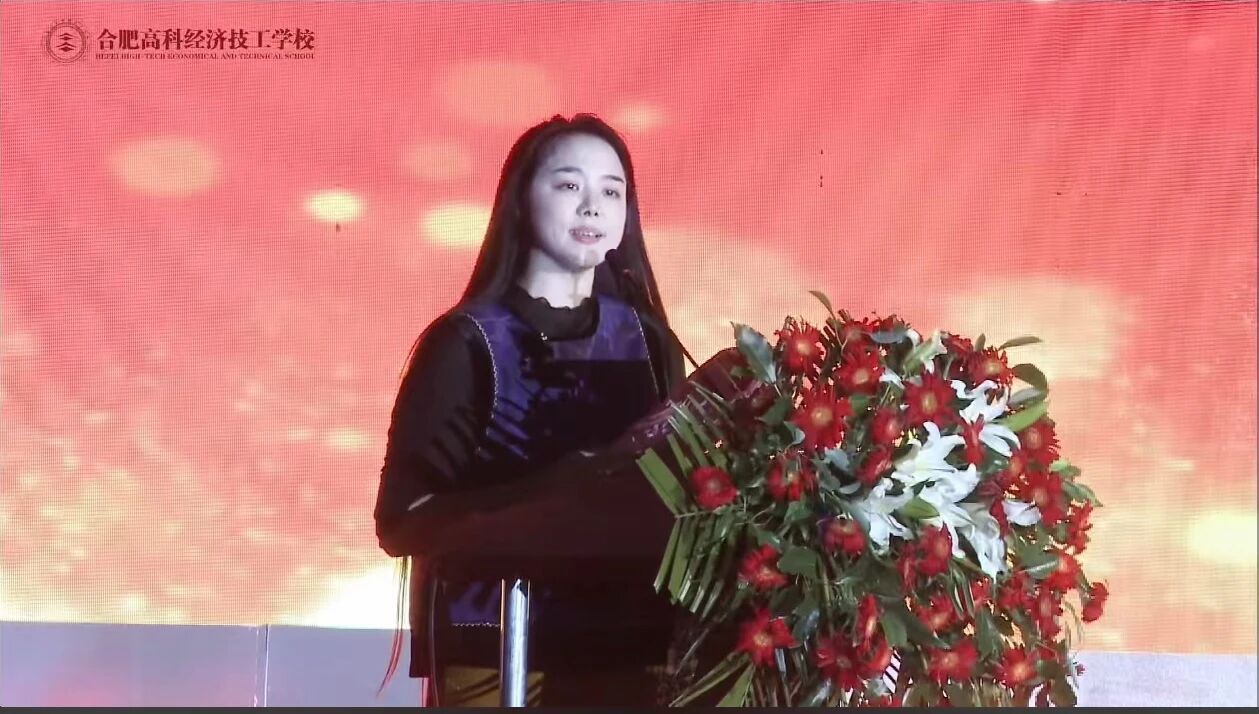 晚会伊始,合肥高科经济技工学校校长彭慧娟上台致辞,向莅临现场的各位领导、嘉宾以及全体师生致以诚挚的节日问候。她以“立报国之志 燃青春之火 书精彩华章”为主题,勉励学子铭记历史、不忘初心,为中华崛起而读书。她强调,在国家产业升级的关键时期,学校将积极响应号召,深化职业教育改革,秉承“以德立人、以技赋能、思行合一、与时俱进”的办学理念,为每一位学生的成长成才保驾护航。她希望同学们践行校训,砥砺品格,锤炼技能,将个人理想融入国家发展,以奋斗之姿谱写新时代的青春华章。
