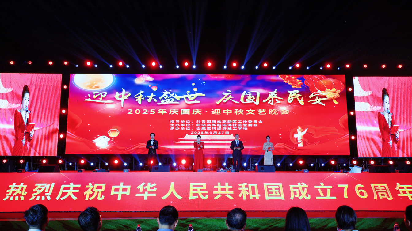 秋光潋滟,丹桂飘香;张灯结彩,双节同辉。当国庆的红旗漫卷家国情怀,当中秋的圆月盛满团圆暖意,927日晚,由共青团新站高新区工作委员会指导、新站高新区瑶海社区管委会主办、合肥高科经济技工学校承办的迎中秋盛世 庆国泰民安——2025年庆国庆·迎中秋文艺晚会,在学校风雨田径场上演。这场融歌舞、武术、动漫人物秀于一体的盛会,不仅是一场视听盛宴,更是一次以艺为媒的精神洗礼。