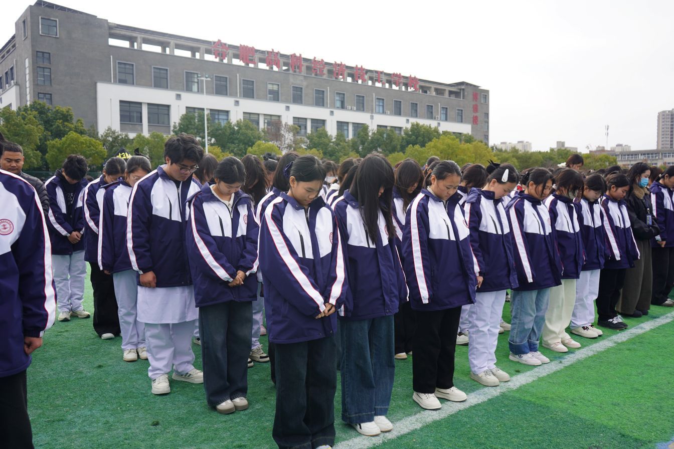随后,全场进入一分钟集体默哀。师生们低头肃立,用沉默寄托对南京大屠杀死难者的深切缅怀,感受和平的珍贵。肃穆的氛围中,家国情怀与和平信念在每个人心中悄然扎根。