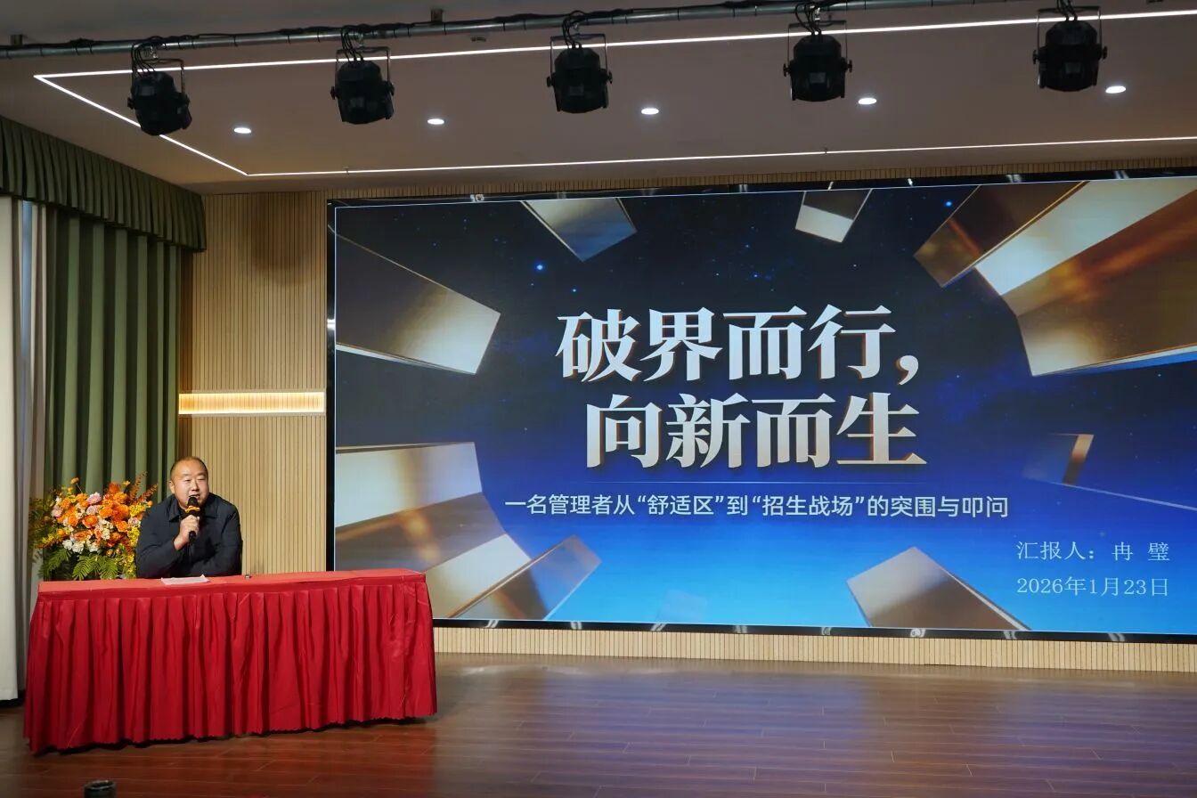 冉校分享了自己从非招生专长到投身一线的“破界”历程。面对本职与招生的双线压力,他通过精算时间、云端协同实现“动态平衡”。在市场中,他将后勤人的务实作风转化为独特优势,以真诚服务赢得信任。他强调,招生带来的不仅是人数增长,更是个人与学校的双重成长。最后,他号召每位同事都能打破边界,成为点燃招生事业的“星星之火”。