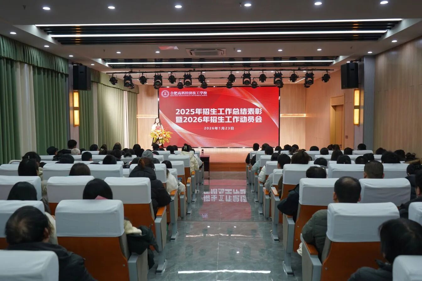 1月23日下午,合肥高科经济技工学校2025年招生工作总结表彰暨2026年招生工作动员会在学校报告厅隆重举行。校领导及全体教职工齐聚一堂,共同回顾过去一年招生战线的奋斗足迹,表彰先进,凝聚共识,为新一年的招生工作蓄势赋能。