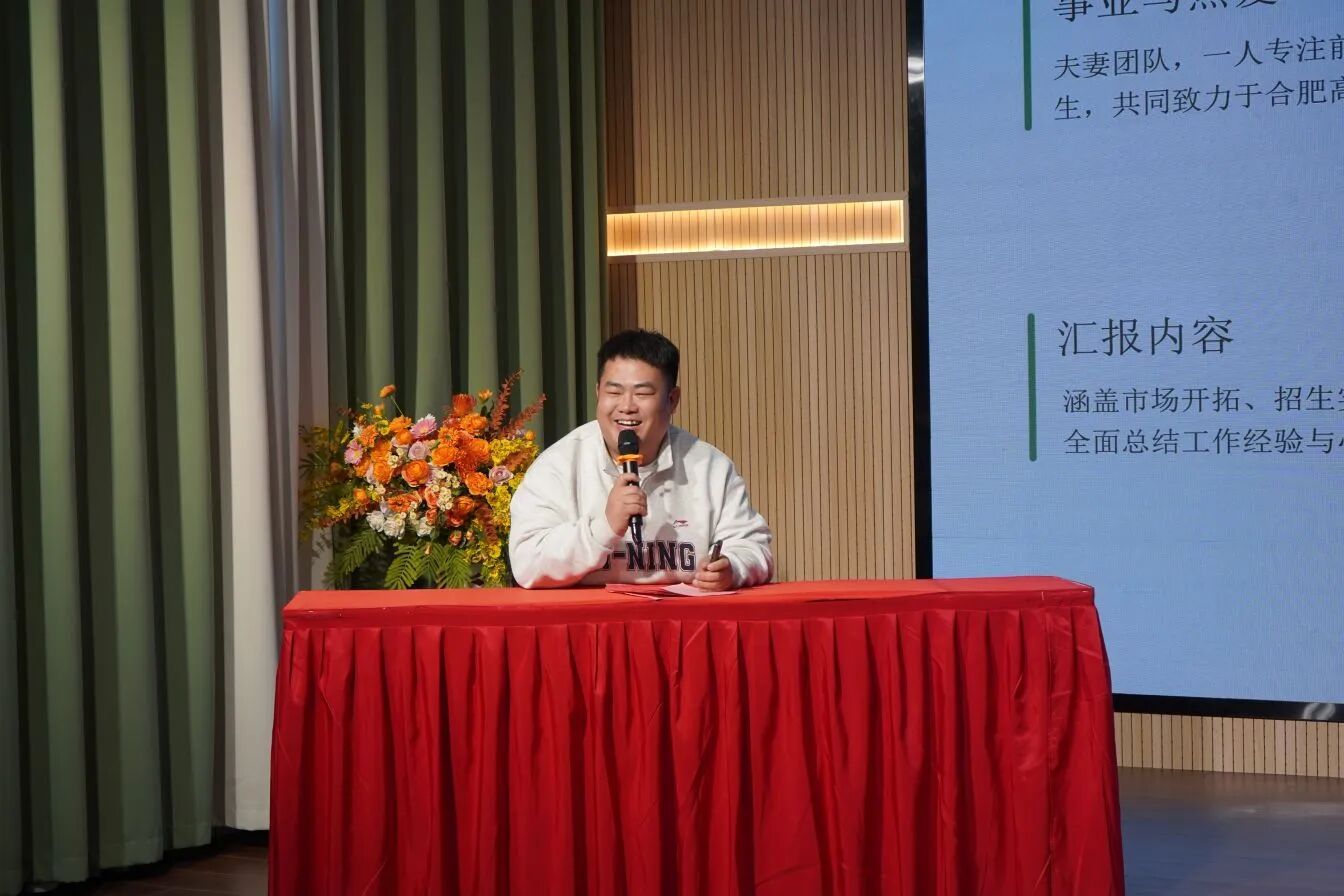 殷老师讲述了与爱人唐露露老师组成的“夫妻档”如何平衡事业与家庭。他深耕县域市场,以真诚步履搭建校际桥梁;她则深入班级,用学生语言精准宣传,并承担繁重班务。二人前后配合,将班级管理与招生工作形成良性循环,班级培养的“小代言人”成为生动宣传力量。他们在共克难关中加深情感,将对教育的双重热爱融入了共同的奋斗,承诺新的一年将继续深耕一线,为学校发展贡献力量。